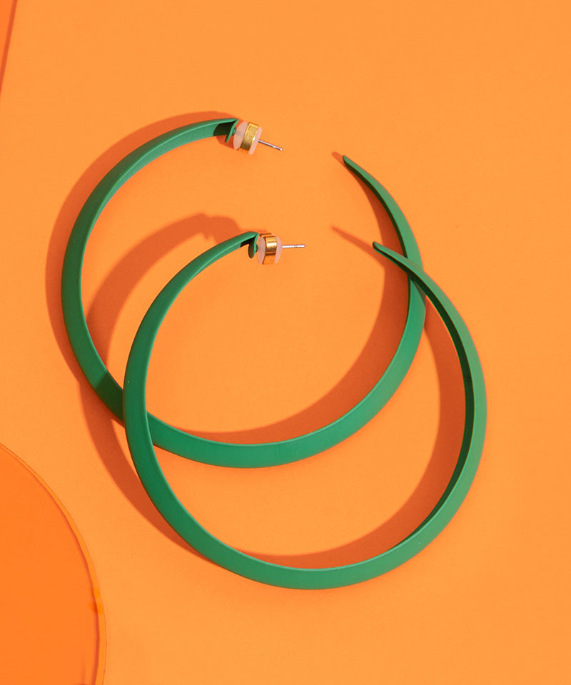 We are enamored with our Pantone custom color hoops! Lightweight and universally sized, they come in a plethora of vivid colors. Each hoop measures 3.3" in diameter.